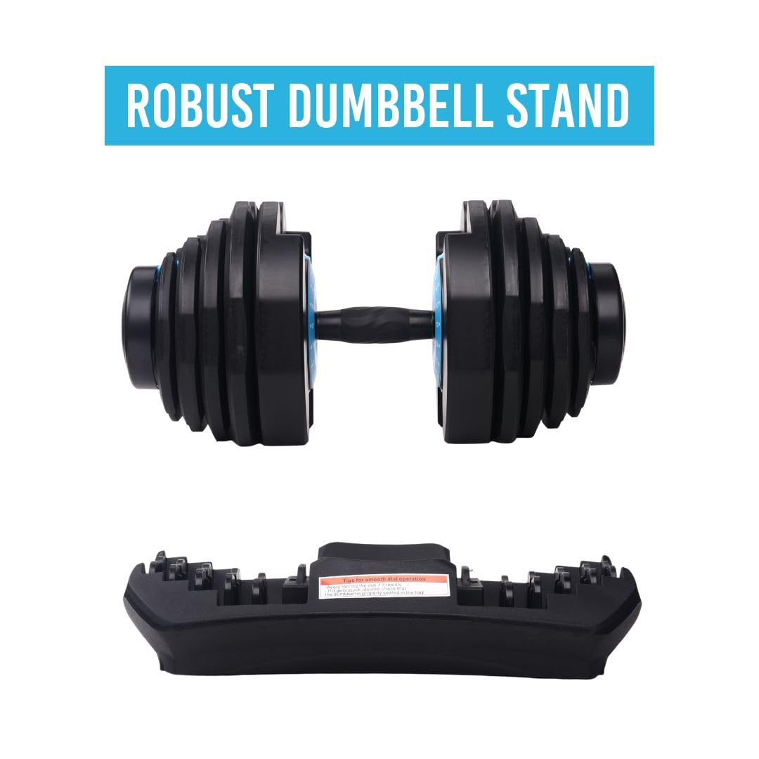 Comes with a robust dumbbell stand to place and adjust your dumbbells during workout and also store your dumbbells when not in use