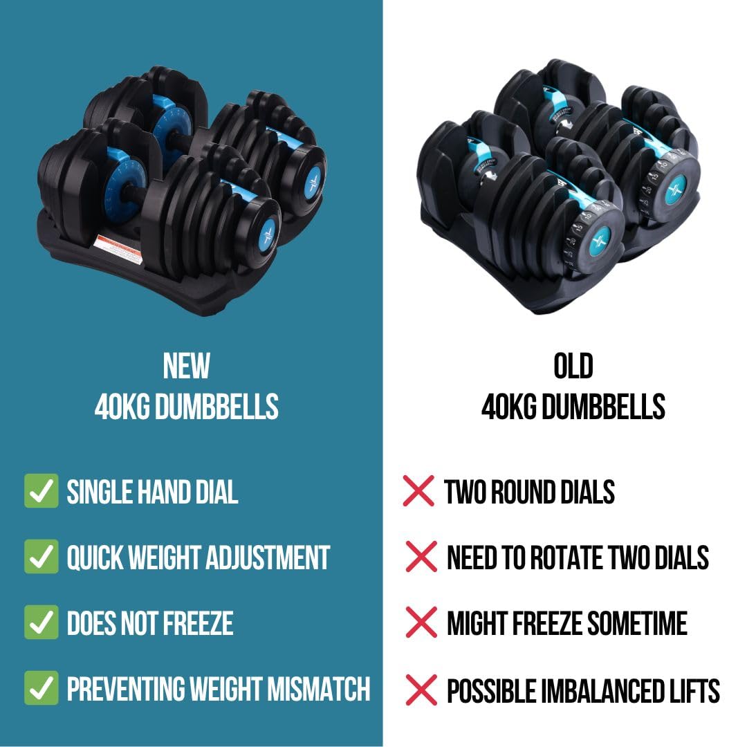 Ditch the bulky weights! XRT65 adjustable dumbbells (4kg-40kg) offer a space-saving solution. Easily adjust weights with user-friendly dials and replace multiple sets. Crafted with top-notch, rust-resistant materials, they adapt to your fitness journey and tackle various exercises. Workout at home, anytime!